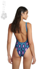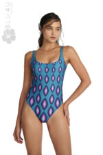 Ολόσωμο μαγιό χωρίς μπανέλα, με αποσπώμενα cups και στρογγυλό άνοιγμα στο ντεκολτέ.
