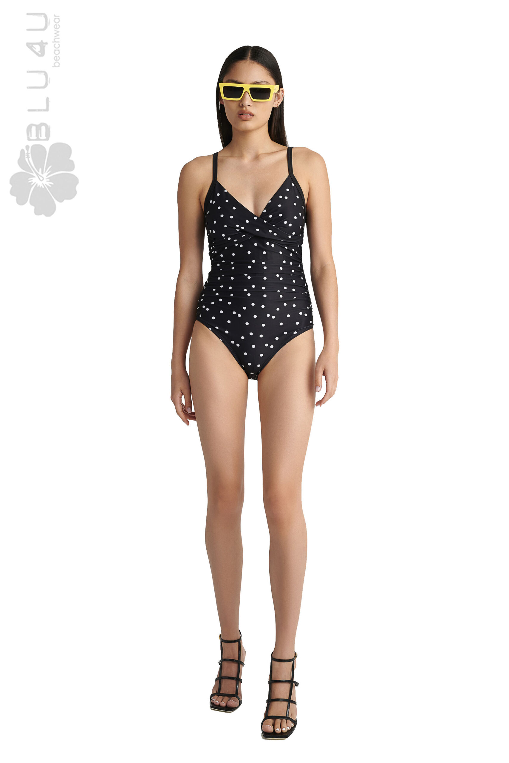 Ντραπέ σχεδίαση που αναδεικνύει το ντεκολτέ όπως και φάσα shaping στην περιοχή της κοιλιάς.